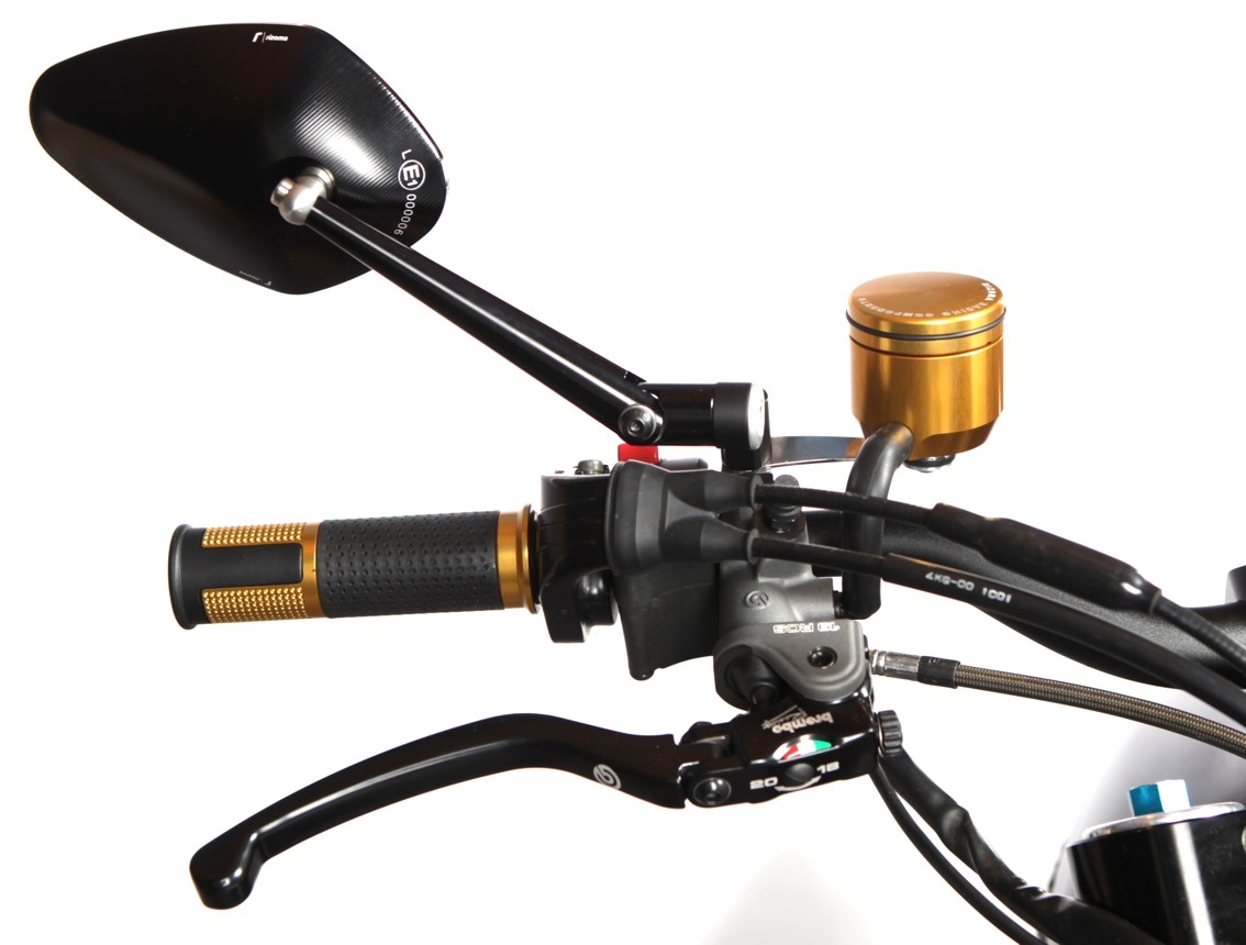 Nicht nur bessere Optik, sondern auch eine wesentlich bessere Bremsleistung und eine deutlich bessere Dosierbarkeit sprechen für die Brembo 19 RCS. Diese Radialbremspumpe bietet die Möglichkeit, durch die Verstellung der Anlenkung, die Handkraft und den Hebelweg auf die gewünschten Belange hin einzustellen. Bisher war es mit den alten PR 19 oder PR 16 Radial-Handbremspumpen nur möglich die Anlenkung vorher zu wählen. Die neue Pumpe vereint dies hervorragend in einem Bauteil. Die Hebelübersetzung wird mit einfachem Umstellen auf 18 oder 20mm Anlenkung geändert. Nicht jeder Fahrer mag einen sehr harten Druckpunkt, viele bevorzugen einen weicheren Druckpunkt mit feiner Dosierbarkeit. Die Kupplungspumpe bietet die gleichen Features. Ein weiterer Vorteil dieser neuen Brembo Pumpe ist, dass die 19 RSC nun auch einen mechanischen Bremslichtschalter hat. Die hydraulischen Bremslichtschalter hatten gelegentlich das Problem, dass sie bei leichtem Zug der Bremse noch nicht geschaltet haben und sich der Hintermann ziemlich gewundert hat. Dies gehört ebenfalls der Vergangenheit an, denn die Mechanik lässt sich ebenfalls einstellen. Ersatzhebel sind auch von Pazzo Racing lieferbar. Die Pumpen haben ein TÜV Teilegutachten und können vom TÜV eingetragen werden. Optimal können die Pumpen mit unseren Bremsflüssigkeitsbehältern kombiniert werden.