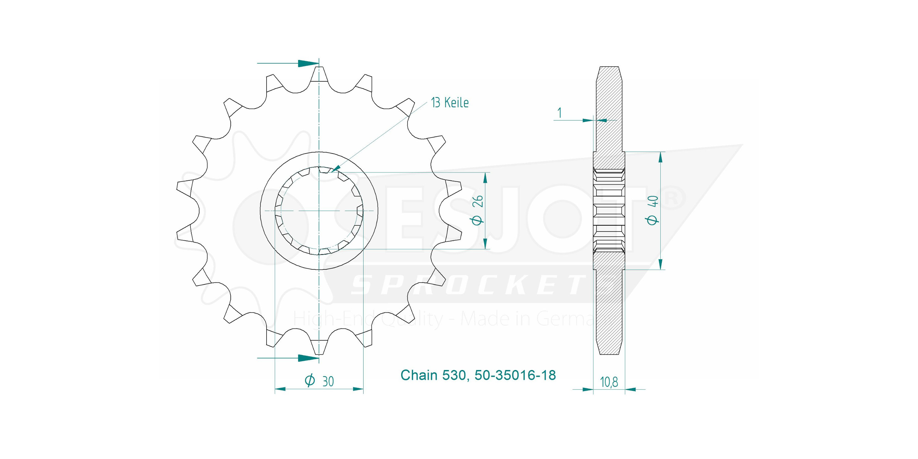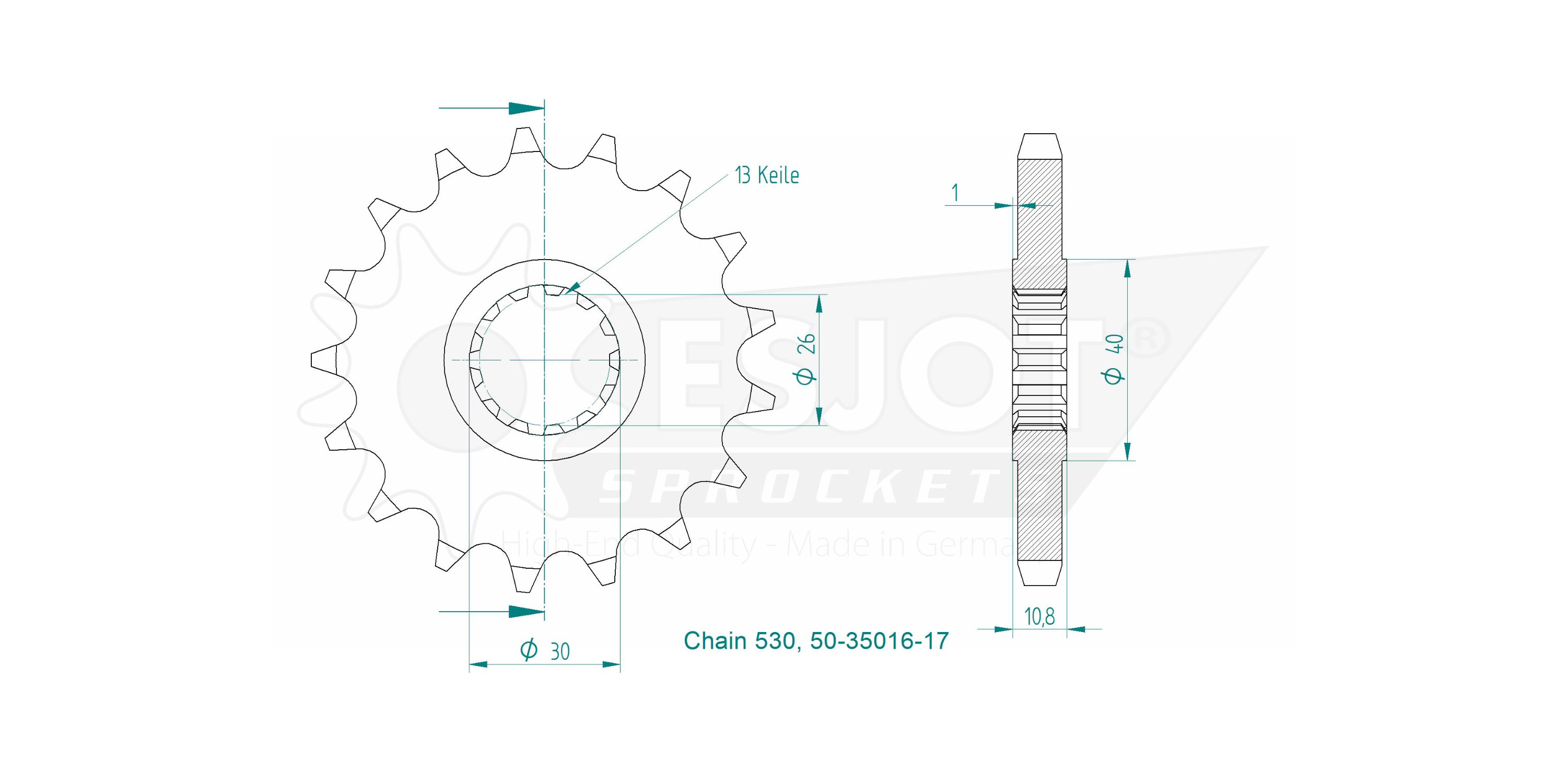 Diese hochwertigen ESJOT Antriebsritzel wurden speziell für die Yamaha XJR Modelle gefertigt. ESJOT ist ein deutscher Hersteller und der größte europäische Erstausrüster für zahlreiche Motorradmarken wie BMW, KTM, Husqvarna, GasGas und weitere. Durch präzise CNC-Fertigung, hochwertige Vergütungsstähle und moderne Wärmebehandlung stehen ESJOT Ritzel für maximale Haltbarkeit und perfekte Passform.
